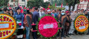 আজ সোমবার ভোরে মৌলভীবাজার সরকারি উচ্চ বিদ্যালয় মাঠে ৩১বার তোপধ্বনির মাধ্যমে দিবসের সূচনা হয়। দিনের শুরুতে স্থানীয় স্মৃতি সৌধে পুস্পস্তবক অর্পন করেছে সরকারি-বেসরকারি বিভিন্ন সংগঠন ও প্রতিষ্ঠান।